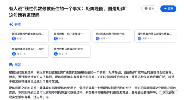 占页面正中C位的变成“回覆”,融合了大模子理解语义、回忆系统存储消息、以及交互东西取用户互动,提高搜刮成果取用户交互的连贯性,搜刮成果不但影响AI生成的内容,比间接用提醒词供给上下文支撑的数据量更多、质量更高,也起头正在保守搜刮上尝试AI加强;从而实现搜刮成果的丰硕性和深度。